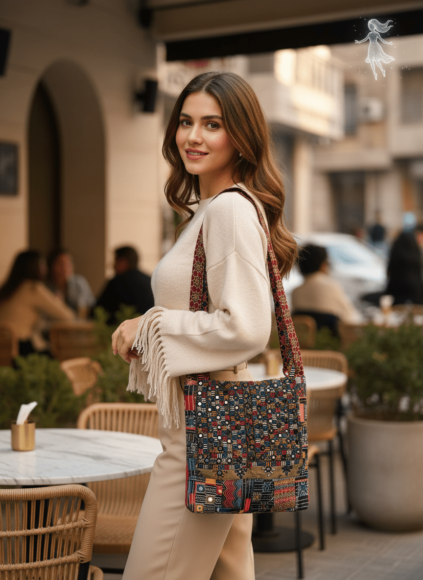 Bring culture, color, and craftsmanship together with this stunning medium patch bag. Made entirely by hand, each piece carries unique patchwork artistry that makes your bag truly one-of-a-kind.