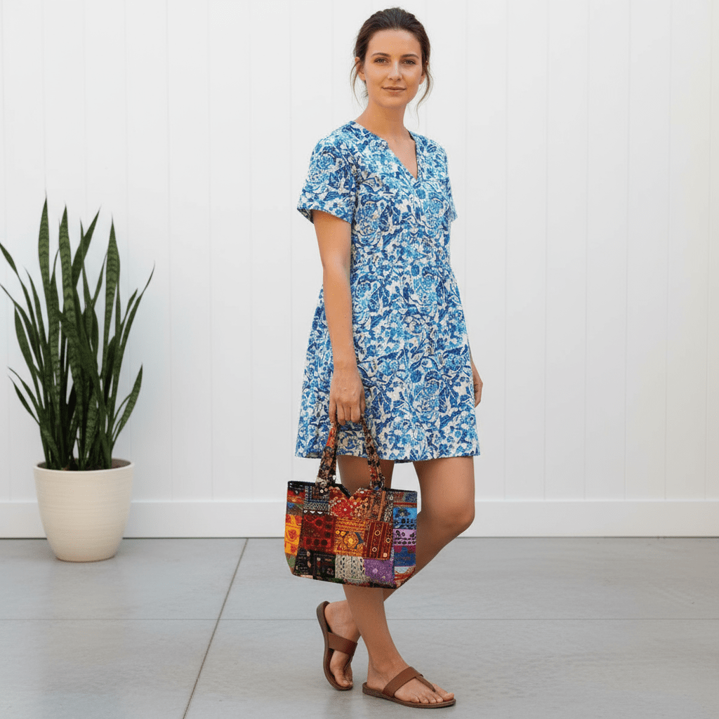 Unique Patchwork: Vibrant handcrafted patches give each bag its own personality
