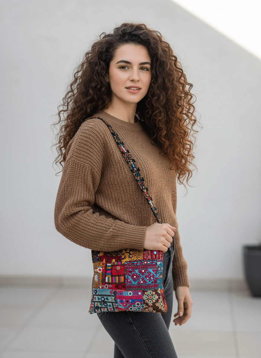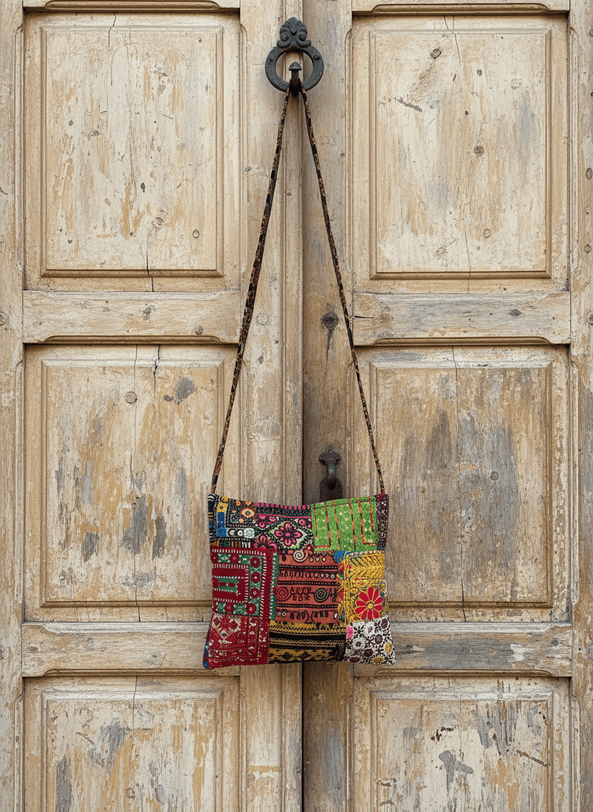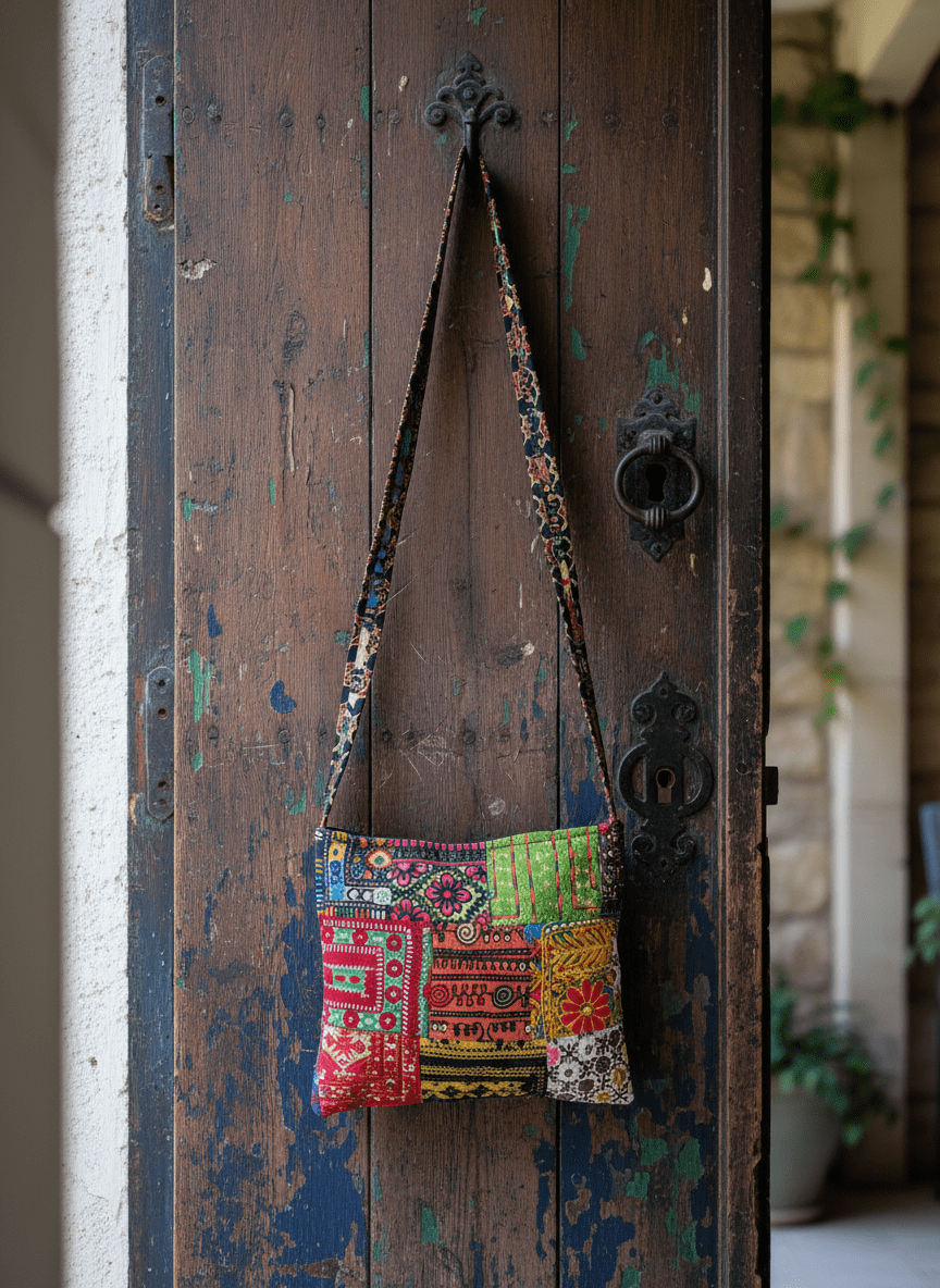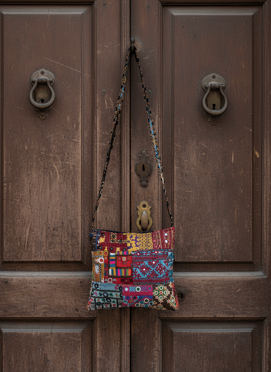 Because it’s entirely handmade, slight irregularities in stitching, mirror placement, or patch alignment are not flaws — they’re the hallmark of authentic artisanal craftsmanship, giving your bag its own character and story.