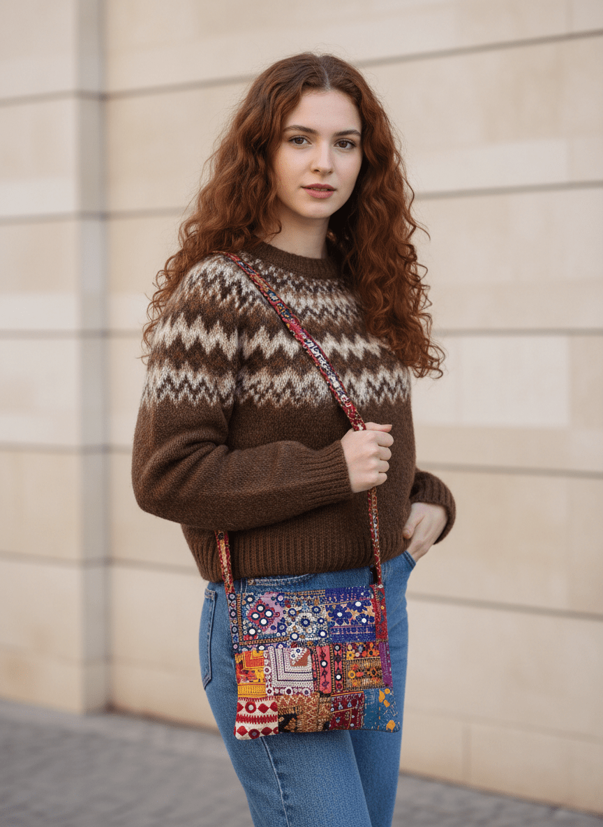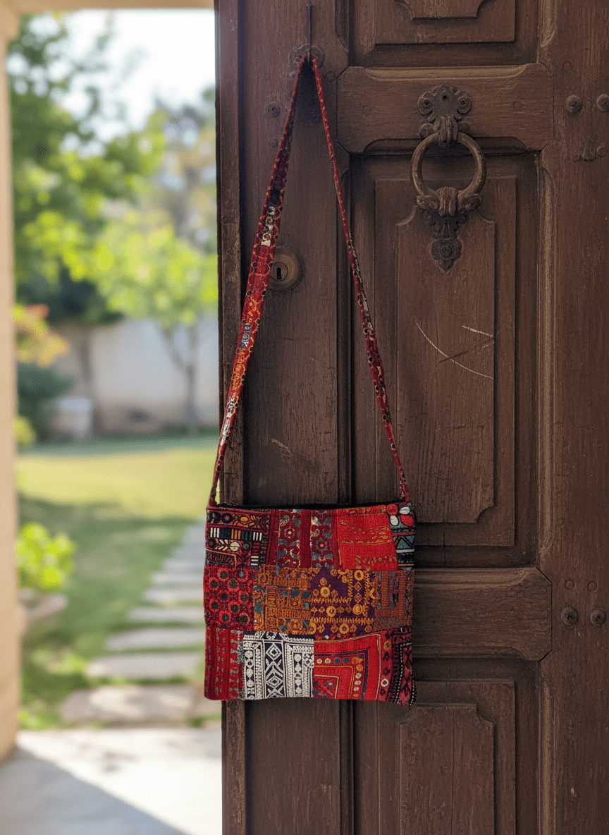 Made entirely by hand, every bag is slightly different from the next. Irregular stitches, tiny mismatches, or uneven patches are not defects — they are a natural part of the handmade craft, making your bag truly one-of-a-kind.