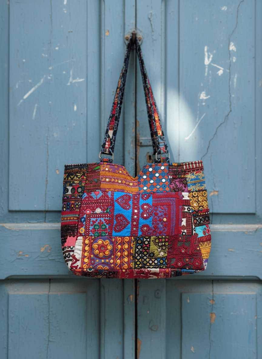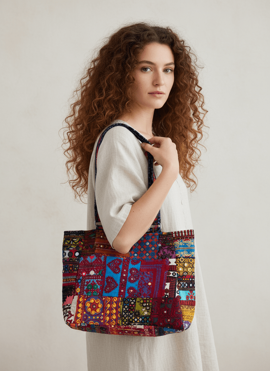 This handbag carries 1700+ years of women’s craftsmanship from the Thar–Mithi desert region.