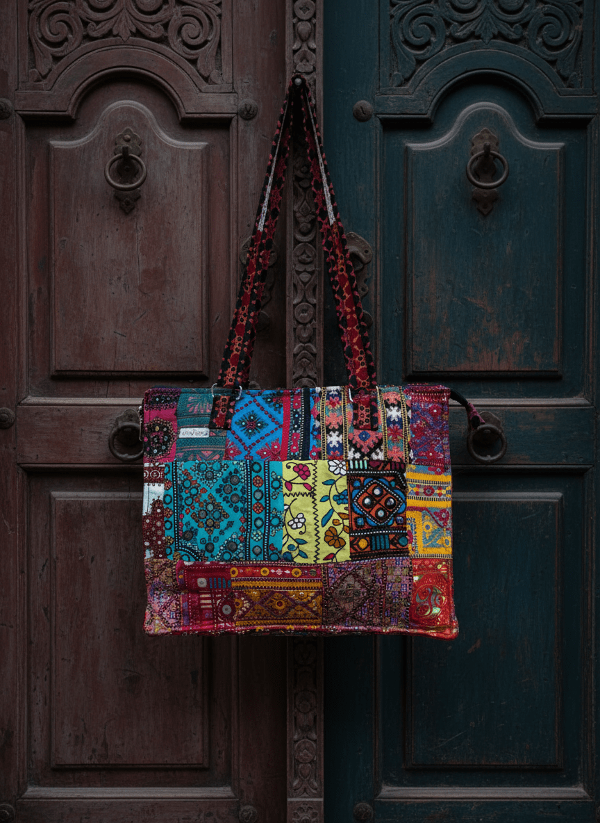Unique Patchwork: Vibrant handcrafted patches give each bag its own personality